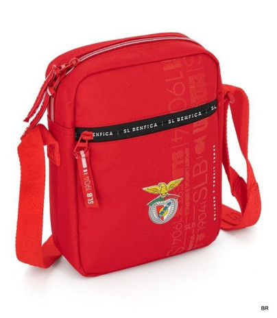 Bolsa à tiracolo do Sport Lisboa e Benfica. Tem dois compartimentos distintos, ambos de fecho, e uma alça ajustável à altura que pretende.