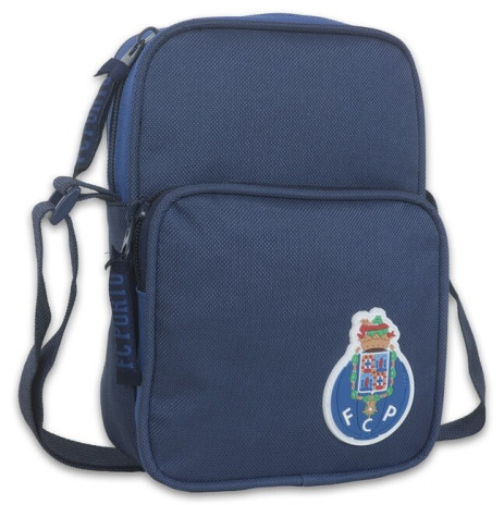 Bolsa à tiracolo do Futebol Clube do Porto. Tem dois compartimentos distintos, ambos de fecho, e uma alça ajustável à altura que pretende.