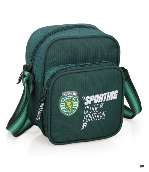 Bolsa à tiracolo do Sporting Clube de Portugal. Tem dois compartimentos distintos, ambos de fecho, e uma alça ajustável à altura que pretende.