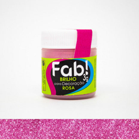 O Brilho em rosa faz parte da linha de brilhos da Fab! é Indicado para realçar o brilho da cor. O que se destaca e prevalece nessa linha são os inúmeros pontos de luz, bastante utilizado para sobrepor cores. Pode ser aplicado à seco em camadas e superfícies finas, com auxílio de um pincel de cerdas macias. Também pode ser diluído na Solução Alcoólica Neutra da Fab! (desenvolvida especialmente para esse tipo de uso) e utilizada na bombinha/pulverizador ou aerógrafo. É indicado para decorar superfícies finas como chantilly, chantininho, pasta americana, pasta de açúcar, pasta de flores, pasta de feijão, chocolate, biscoitos, glacê real, macarons e etc.