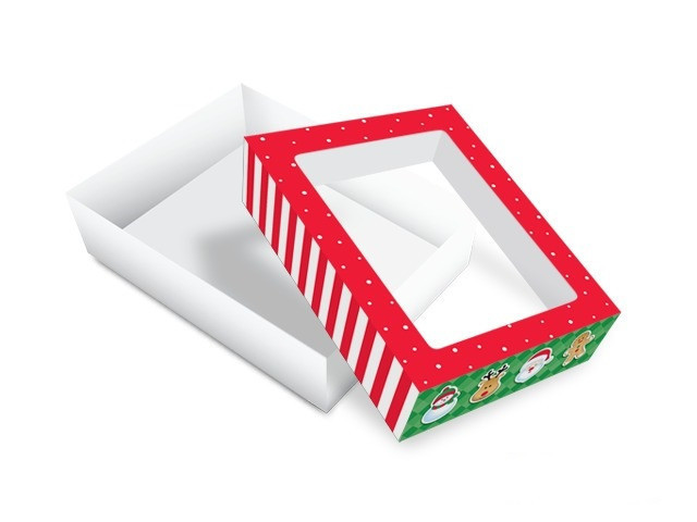 Caixa em cartão para colocar 6 brigadeiros de natal ou outros pequenos doces. Com tampa transparente para poder ver o que tem lá dentro. Inclui divisórias (forma pétala em branco).