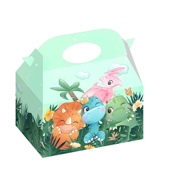 Caixa de cartão para colocar os brindes na tua festa de aniversário com o tema de dinossauros.