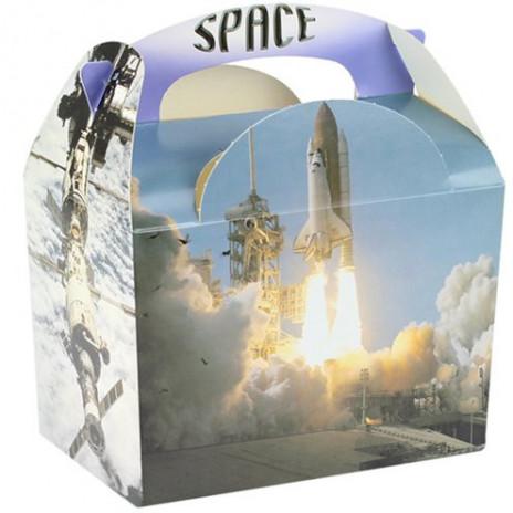 Caixinhas de cartão para brindes do tema Espaço. Óptimas para a colocação de guloseimas ou de brindes na tua festa de aniversário. Dimensões: 12x10x15cm.