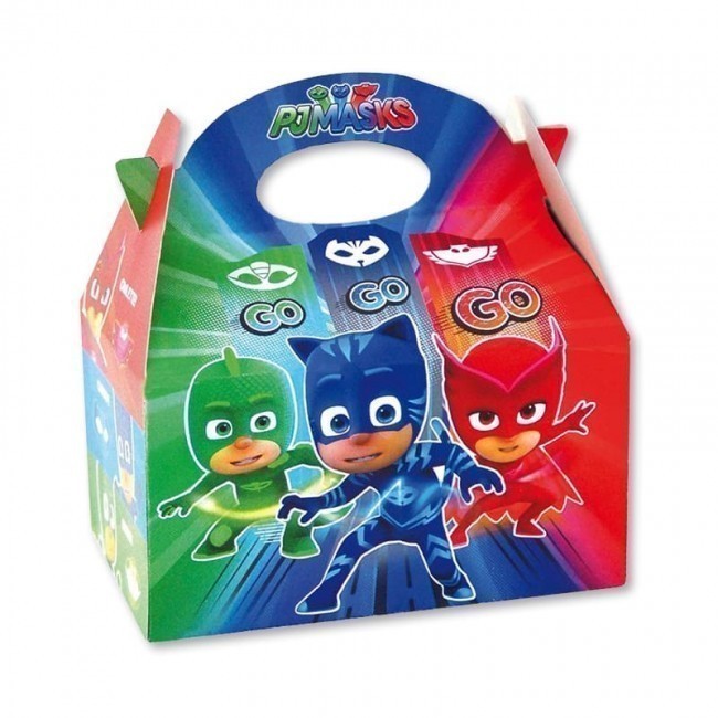 Caixinha de cartão para brindes com imagem dos PJ Masks.