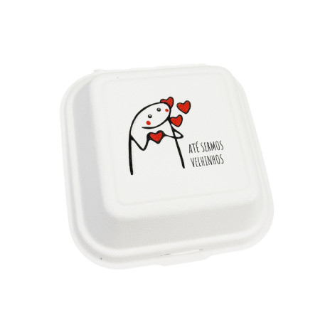 Fabricada em material ecológico e biodegradável, esta embalagem tipo clamshell é perfeita para acomodar os populares “Bento Cakes”, hambúrgueres artesanais ou doces. É a escolha ideal para quem quer fugir ao tradicional e oferecer uma apresentação sustentável, descontraída e cheia de personalidade, garantindo que a embalagem transmite tanto carinho quanto o produto no seu interior.