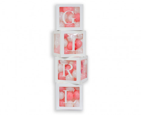 Crie um ponto chamativo no chá de bebé da sua filha com esses blocos fofos para colocar balões com a inscrição da palavra GIRL. Use como peça central ou cenário de foto para o seu chá de bebé.
