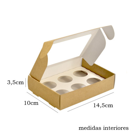 Caixa kraft para colocar 6 brigadeiros, com tampa transparente para poder ver o que tem lá dentro.