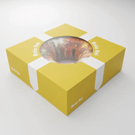 Caixa de cartolina com as dimensões de 28x28x7cm.