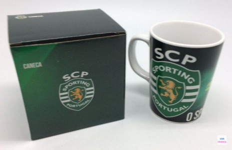 Caneca clássica em cerâmica do Sporting Clube de Portugal, com o emblema do clube. Inclui caixa.