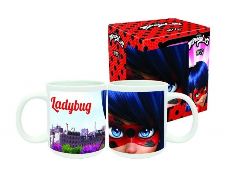 Caneca em Cerâmica com pega. Estampada com a imagem de Ladybug e caixa de oferta.