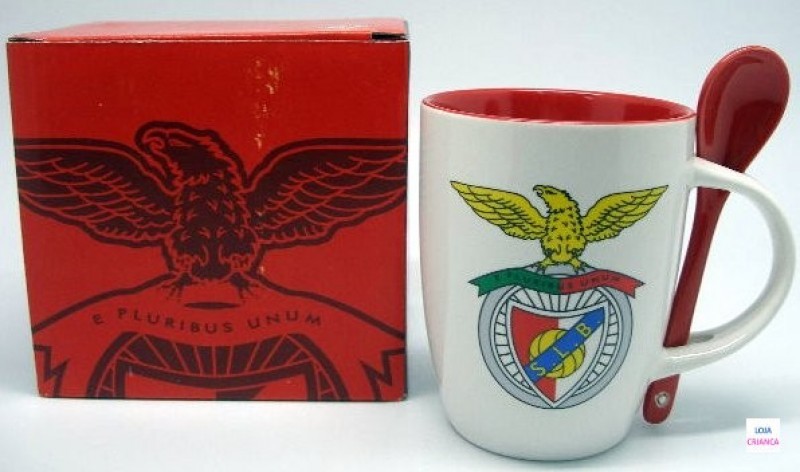 Caneca com Colher do SLB Benfica, caneca de ceramica branca por fora e vermelha por dentro o emblema do benfica, com uma colher vermelha.