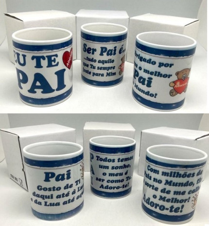 Caneca em cerâmica para oferecer no dia do pai, em tons de azul com ursinhos. Disponível com várias frases.