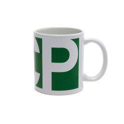 Caneca do Sporting Clube de Portugal com a inscrição SCP em grande.