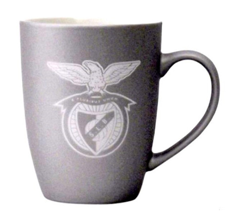 Caneca com toque veludo na cor prata do Sport Lisboa e Benfica em cerâmica.