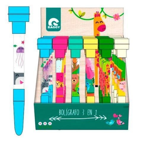 Caneta com carimbo e bola de sabão de animais com vários modelos sortidos.
