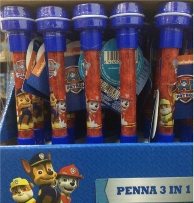 Um brinde irresistível para qualquer menino numa festinha d Patrulha Pata. Uma esferográfica que faz bolhinhas de sabão e carimbo incluído.