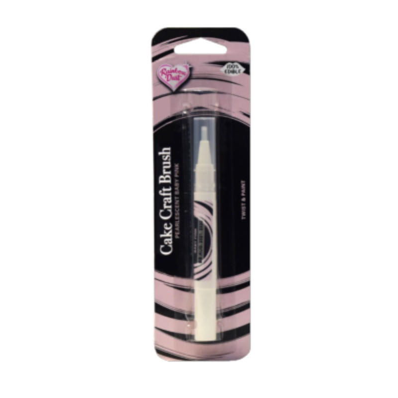 O Click-Twist Brush® da Rainbow Dust é um pincel pronto para usar e muito prático, pré-carregado com a popular tinta rosa clara para alimentos. Basta girar a extremidade do pincel até que a tinta preencha a ponta do pincel e estará pronto para começar!