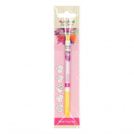 A Caneta Food Pen comestível FunCakes FunColours é uma caneta com tinta comestível que pode ser usada para fazer pequenos detalhes, textos, linhas e muito mais em bolos, cupcakes e biscoitos. O pincel tem uma ponta de pincel flexível e prática para linhas finas e grossas. A caneta tem um fluxo de tinta fácil e a tinta tem um tempo de secagem rápido. Pode desenhar diretamente nas superfícies lisas secas, duras ou semiduras, como fundente, maçapão, pasta de goma. Ótimo para personalizar as suas guloseimas com mensagens, nomes ou datas. Ideal também para fazer olhos, bocas e mais detalhes nas suas figuras modeladas e para fazer veios em pétalas e flores.
