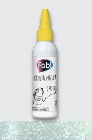 A Caneta Mágica Cristal é um gel alimentício composto de água, açúcar, amido de mandioca e corantes.