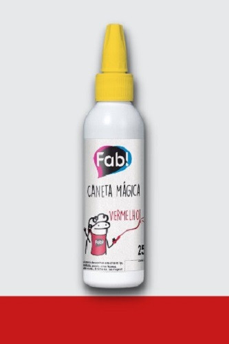 A Caneta Mágica vermelha é um gel alimentício composto de água, açúcar, amido de mandioca e corantes.