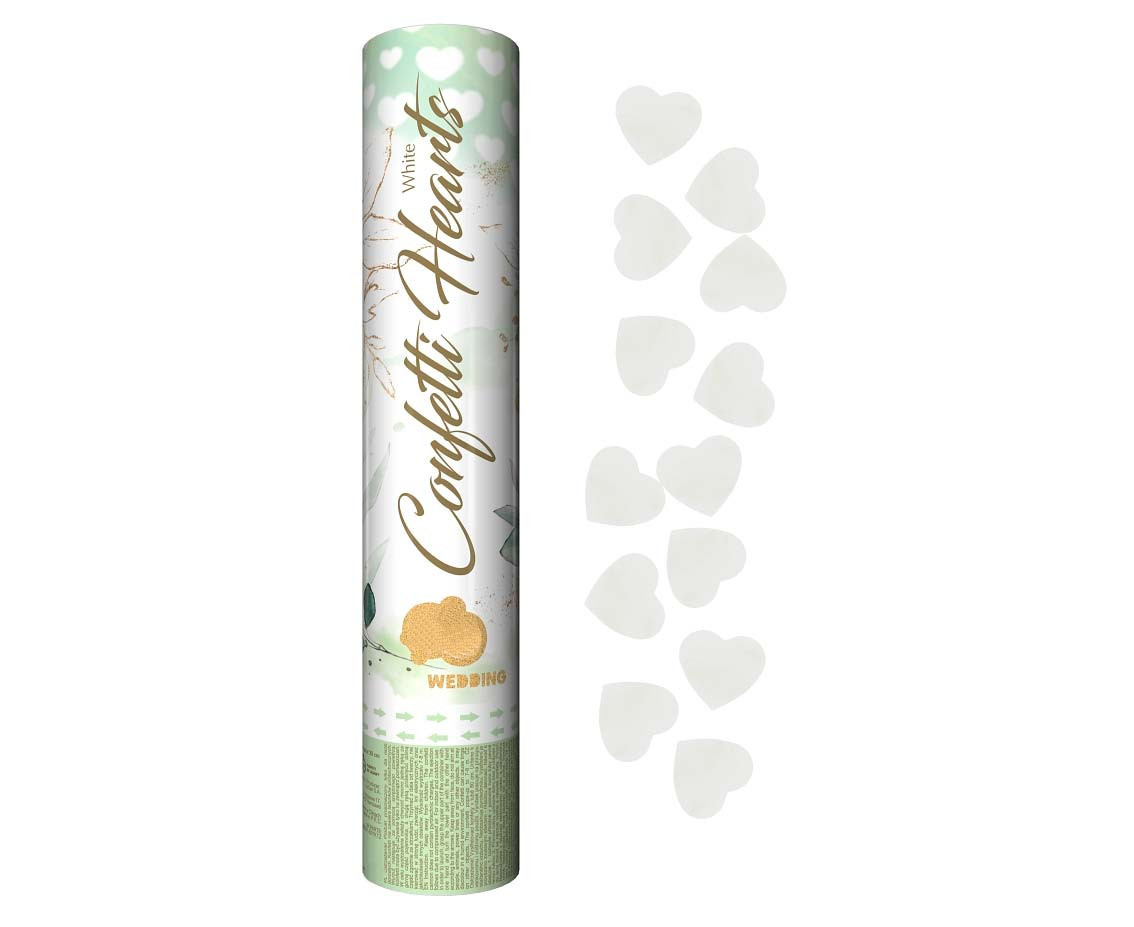 Canhão de ar comprimido lança confettis de 30cm com corações brancos