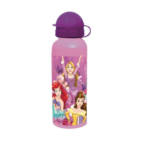 Garrafa em alumínio com tampa plástica das Princesas da Disney, com capacidade de 520ml.