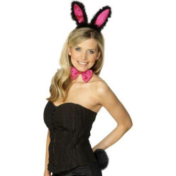 Conjunto Acessórios Coelho Preto e Rosa