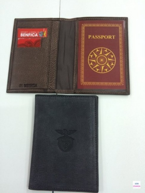 Carteira para passaporte em pele do Benfica SLB, castanha e preta