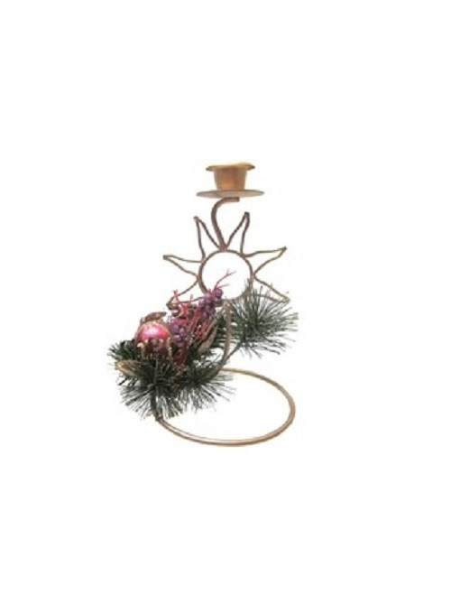 Decore a sua casa ou a sua mesa na época de natal com este castiçal em metal dourado para 1 vela com vários pormenores natalícios.