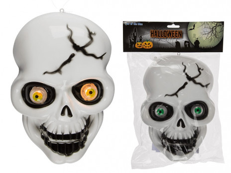Crânio assustador com olhos que acendem. Um artigo fantástico para a tua festa de Halloween, pode ser pendurado na parede e combinado com muitos outros itens que temos para a tua festa de Halloween.