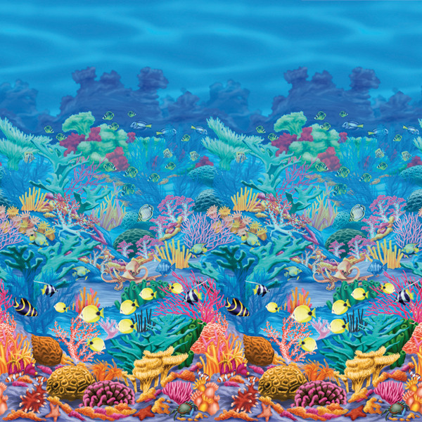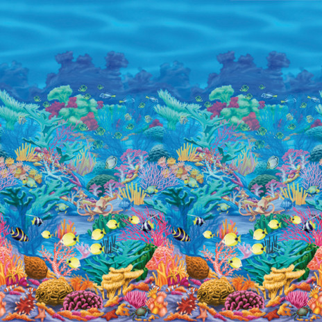 Painel composto por 4 partes para decorar festas temáticas do mar e das sereias. Para uso interior ou exterior. Leve, fácil de aplicar e reutilizável.