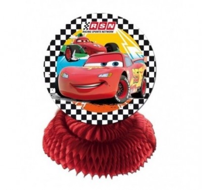 Preparar a tua mesa para a grande corrida é fácil com este kit de decoração do Faísca Cars, que inclui um centro de mesa 3D grande com o Cars