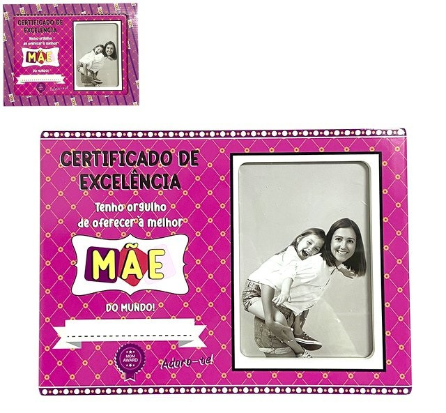 Certificado para personalizar com nome da mãe e do filho/a/os/as para oferecer no dia do pai. Com vidro para colocar num sítio bem visível.