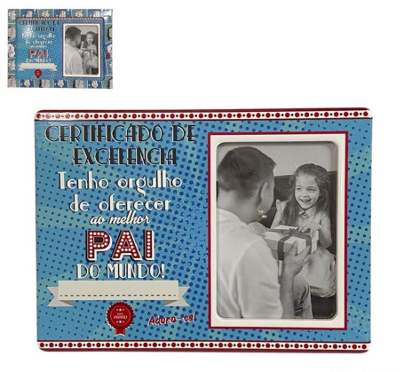 Certificado para personalizar com nome do pai e do filho/a/os/as para oferecer no dia do pai. Com vidro para colocar num sítio bem visível.