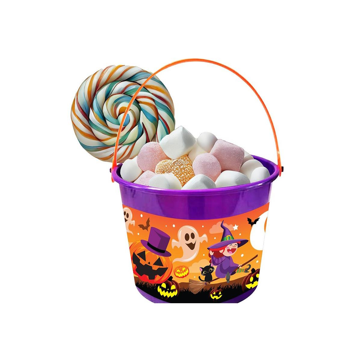 Cesto de bruxa, onde pode colocar aperitivos ou doces em festas de Halloween, uma ótima decoração de mesa. Também pode ser usado para recolher os doces nas casas dos vizinhos.