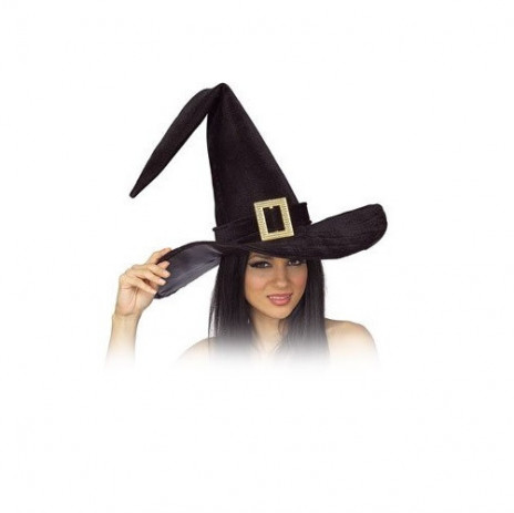 Chapéu de bruxa preto com fivela para utilizar no seu disfarce de Halloween ou de Carnaval.