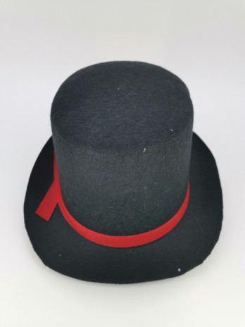 Adicione ao seu disfarce de carnaval de criança esta cartola única preta com fita vermelha.