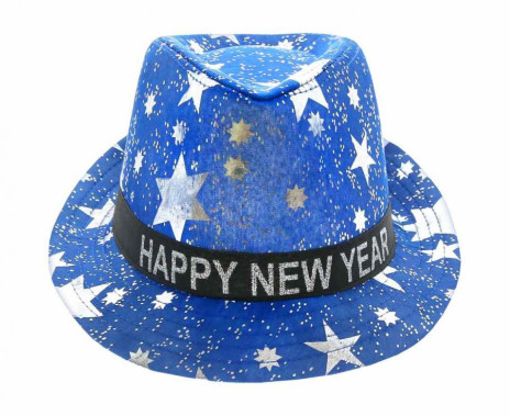 Chapéu para festejar a chegar do novo ano em azul com estrelas prateadas.