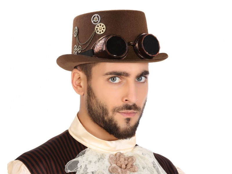Adorne o seu fato de carnaval com a cartola de steampunk para adulto, para homem ou mulher.