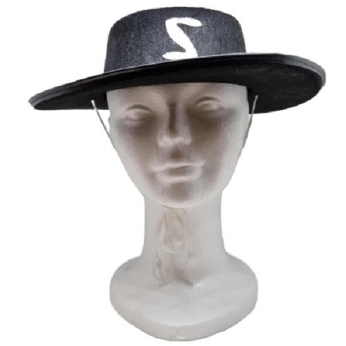Chapéu preto do Zorro para completar o disfarce do seu filho. Inclui cordão branco para o pescoço.