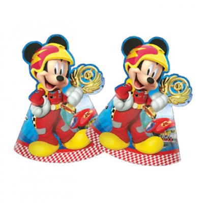 6 chapéus cone do Mickey Mouse Roadster Racers para diversão garantida na tua festa de anos.Aproximadamente 16 cm de comprimento.