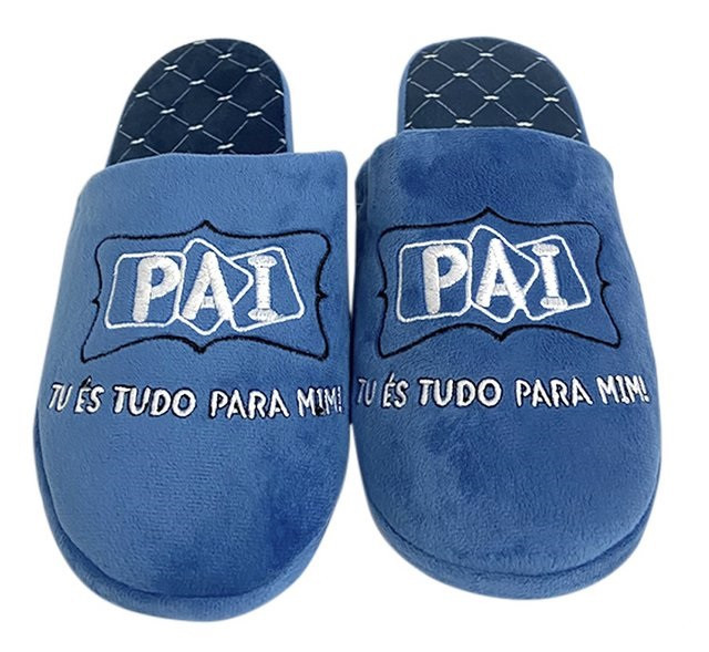 Chinelos de quarto para oferecer no dia do pai, com a inscrição "Pai tu és tudo para mim!". Mantém os pés quentinhos.