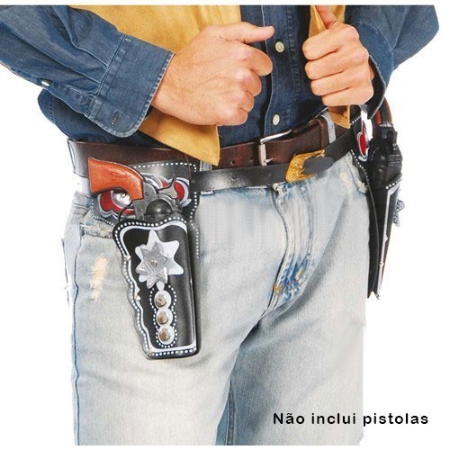Acessório para Carnaval ou festa temática composto por cinto com 2 coldres.
