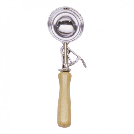 Tala colher de gelado com cabo de madeira.Pode ser usado para gelados, puré de batatas ou numa deliciosa salada russa.