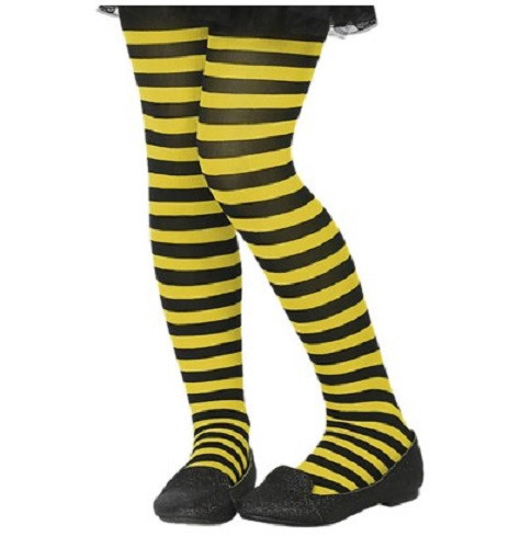 Collants para criança com riscas amarelas e pretas para completar o seu disfarce de Carnaval.