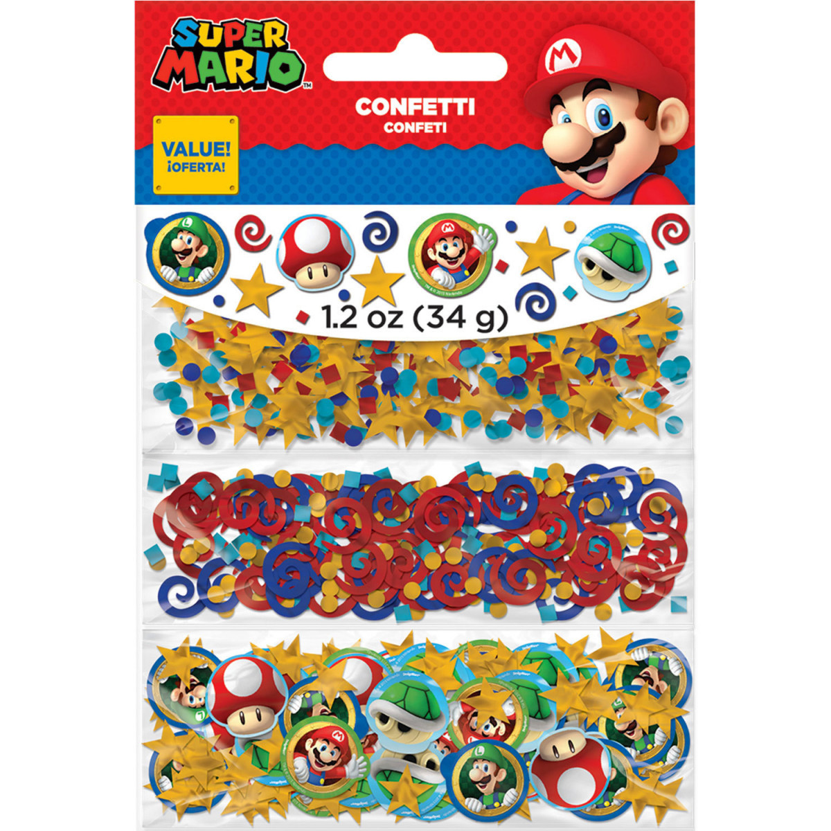 Confetis metalizados em cores sortidas, para festas do Super Mário da Nitendo