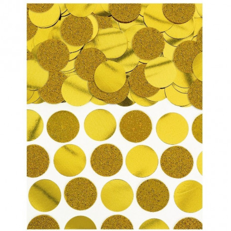 Embalagem de confettis em dourado com glitter e com aspeto metálico. Ideal para abrilhantar qualquer festa.