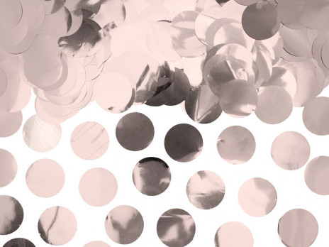 Embalagem de confettis em rosa dourado em forma de círculo com as dimensões de 2.5cm.