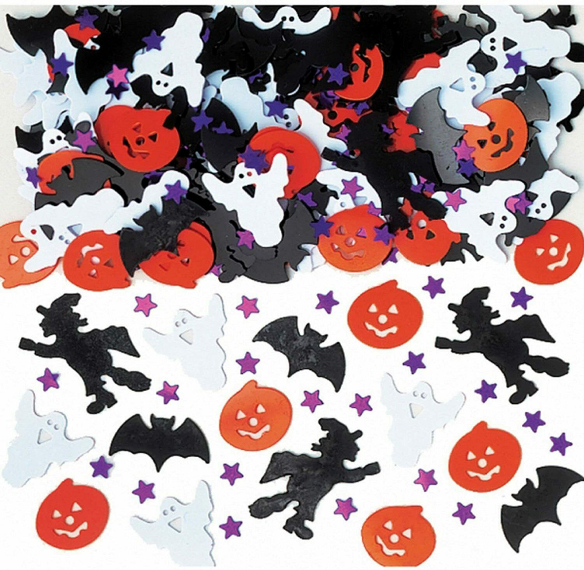 Embalagem de confettis para decoração de festa de halloween, com luas, abóboras, fantasmas, morcegos, etc.