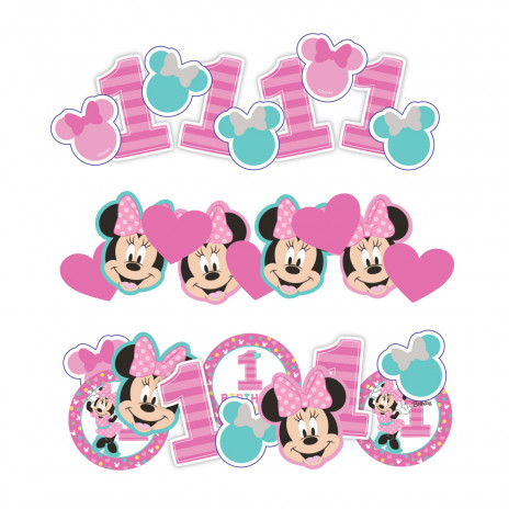 Conjunto de 3 packs de confettis sortidos do Minnie Mouse para decoração da primeira festa de aniversário em mesas ou outros.